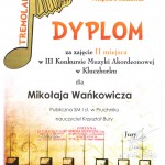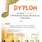 Podobnie jak na poprzednich konkursach i przeglądach akordeonowych znaleźli się w grupie laureatów a nauczyciel został wyróżniony za bardzo dobre przygotowanie swoich podopiecznych do prezentacji. Dyplomy potwierdzają uzyskane wyniki:
