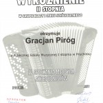 Przyzwyczailiśmy się już do sukcesów naszych akordeonistów. Tym bardziej miło nam, że następny uczeń Publicznej Szkoły Muzycznej I stopnia w Pruchniku – tym razem z klasy akordeonu Pawła Nowaka zdobył wyróżnienie na konkursie w Brzezinach. Gracjan Piróg wziął udział w IV Spotkaniach Młodych Akordeonistów, które odbywały się 11 maja 2016 roku.