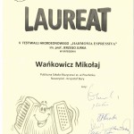 - Mikołaj Wańkowicz – tytuł LAUREATA (najwyższa nagroda w konkursie) w kategorii I