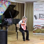 Uczniowie z sekcji skrzypiec Marty Szałaj, sekcji fortepianu Grzegorza Wójcikiewicza i sekcji gitary Andrzeja Antonika zagrali na koncercie szkolnym, który odbył się 13 czerwca 2016 roku w Sali Widowiskowej Publicznego Gimnazjum w Pruchniku. Zaprezentowali się wszyscy instrumentaliści z wymienionych klas. Uczniom akompaniował Grzegorz Wójcikiewicz, zdjęcia uczestników wykonała Jowita Nidecka.