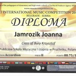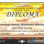 Mikołaj Wańkowicz i Joanna Jamrozik z klasy akordeonu Krzysztofa Burego wzięli udział w Międzynarodowym Konkursie Internetowym – VII INTERNATIONAL MUSICAL COMPETITION – Belgrade, Serbia 2016. Jakość prezentacji naszych młodych solistów i ich wspólna interpretacja w duecie zaowocowały bardzo wysokimi lokatami.