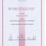 Z przyjemnością informujemy, że 22 lutego 2017 roku na Regionalnych Przesłuchaniach Centrum Edukacji Artystycznej sekcji instrumentów dętych drewnianych uczeń naszej szkoły Seweryn Maj otrzymał wyróżnienie. Dyplomy z wyróżnieniem otrzymywali uczniowie, którzy uzyskali co najmniej 22 punkty i nauczyciele wyróżnionych uczniów. Wyróżnienia otrzymali także nauczyciele: Jarosław Szuper – za przygotowanie ucznia do przesłuchań i Wojciech Styś za akompaniament.