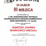 Duet w składzie: Joanna Jamrozik i Mikołaj Wańkowicz zajął III miejsce w kategorii A.