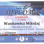 W kategorii  akordeonu wystąpiło 114 uczestników z siedmiu krajów : Polski, Rosji, Ukrainy, Białorusi, Serbii, Chorwacji i Czarnogóry. Komisja konkursowa, złożona z wybitnych profesorów z Polski, Finlandii, Serbii, Rosji i Austrii  bardzo wysoko oceniła prezentację uczniów naszej szkoły przyznając następujące nagrody :