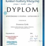 - Zuzanna Cynk z klasy fortepianu p. Justyny Ignac-Kycia – Wyróżnienie II Stopnia