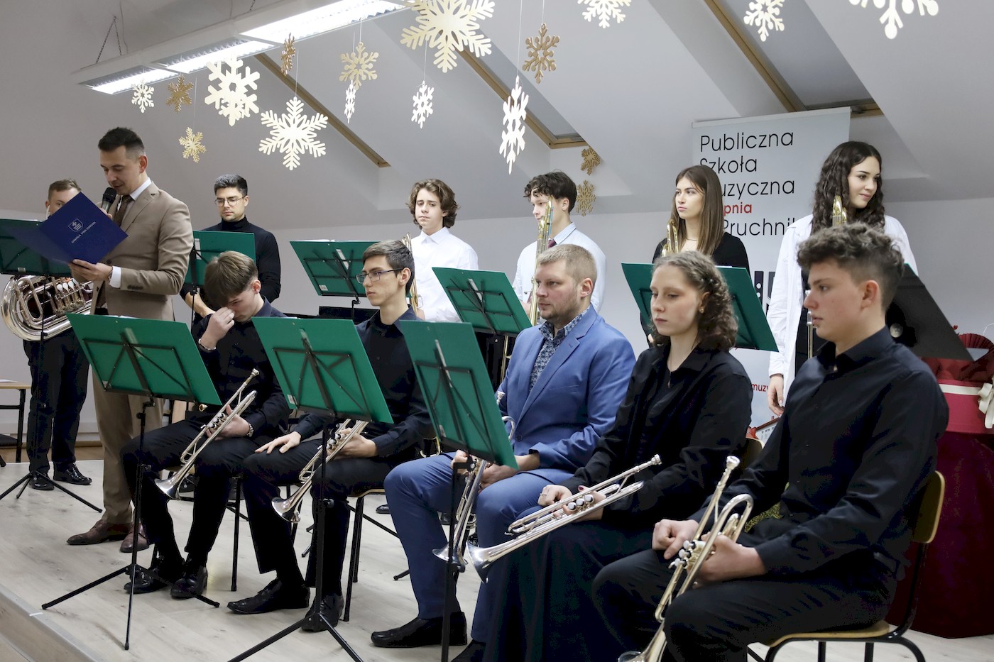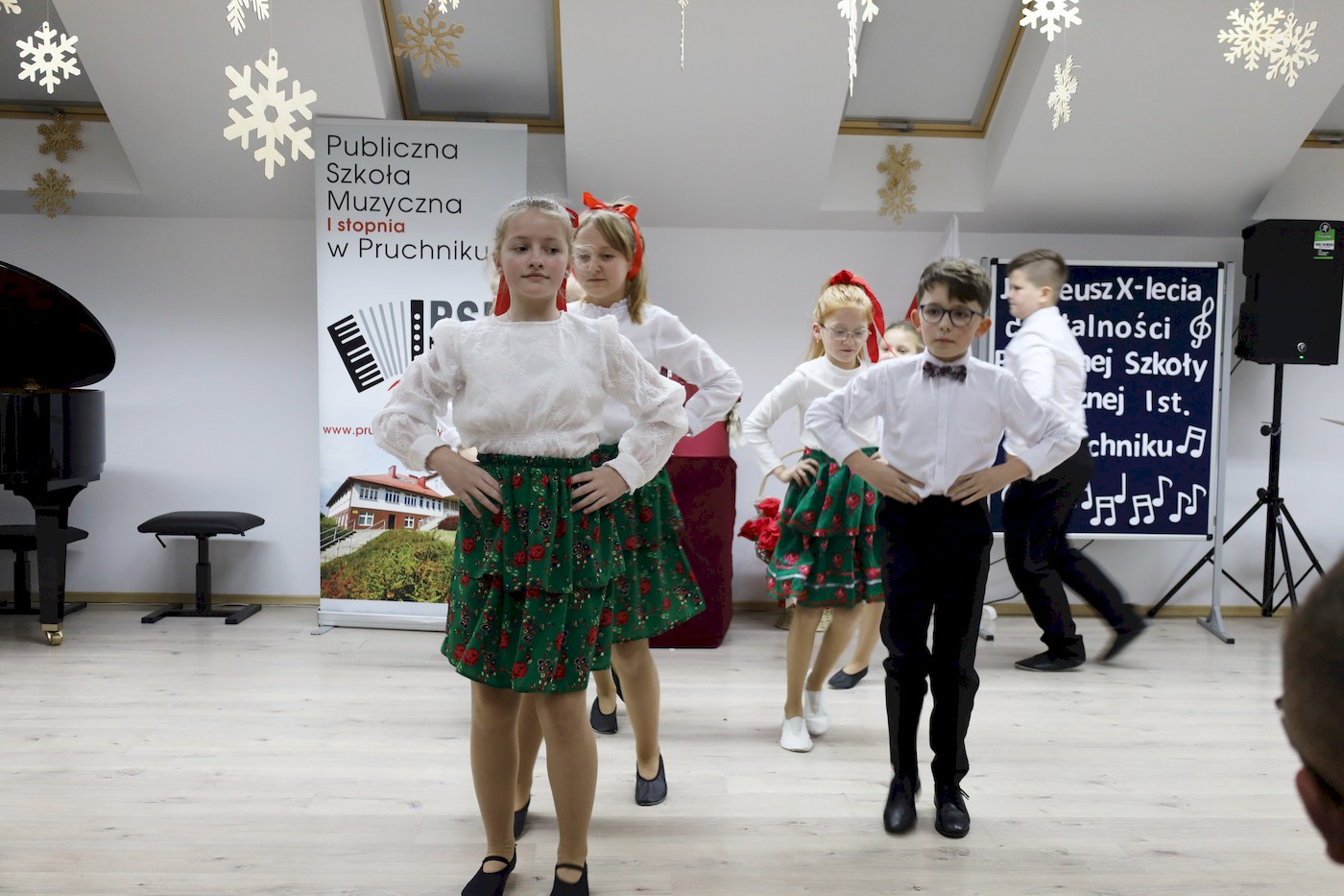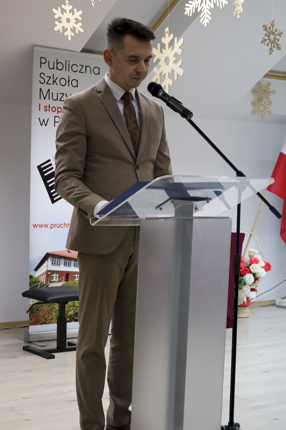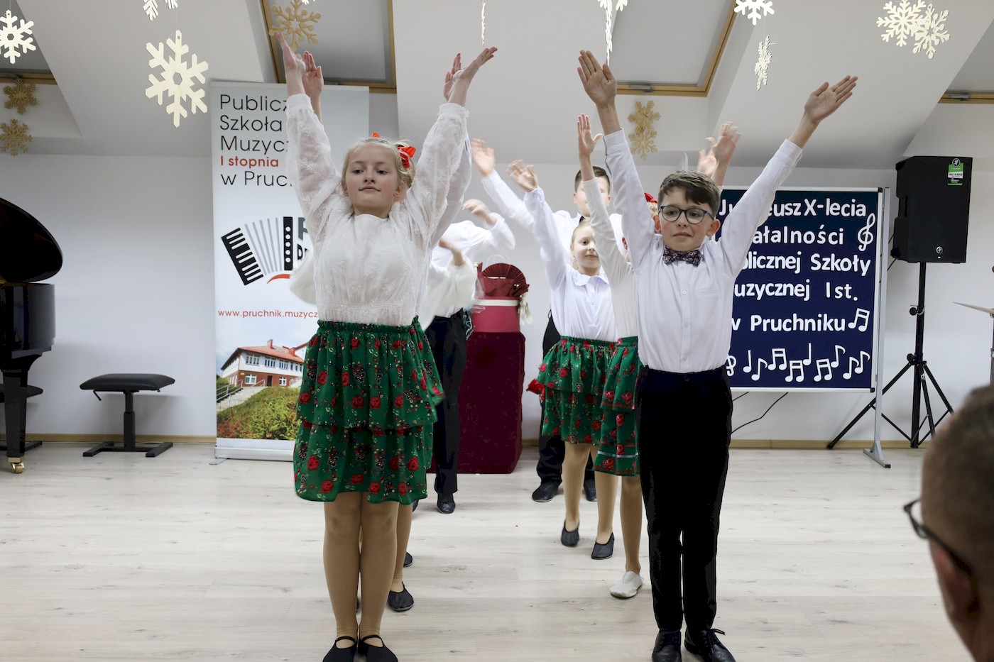 W sobotnie popołudnie 13 grudnia 2025 roku odbył się Koncert Jubileuszowy z okazji X-lecia Publicznej Szkoły Muzycznej I stopnia w Pruchniku. Uroczystość odbyła się w Sali Koncertowej szkoły. Swoją obecnością zaszczycili nas między innymi: prof. Dariusz Dudek – Doradca Prezydenta Rzeczypospolitej Polskiej, Marek Rząsa – poseł na Sejm RP, Zenobiusz Kajda – Przedstawiciel Ministra Kultury i Dziedzictwa Narodowego – Główny Wizytator Centrum Edukacji Artystycznej, Stanisław Kłopot – Burmistrz Pruchnika, Wacław Szkoła – Radny Powiatu Jarosławskiego, poprzedni Burmistrz Pruchnika, inicjator utworzenia naszej szkoły i Ryszard Bugiel – Wójt Gminy Kamień, zaprzyjaźniony z naszą Gminą, który dzielił się swoimi doświadczeniami jak uruchomić szkołę publiczną na przykładzie Gminy Kamień. W uroczystości uczestniczyli także przedstawiciele władz samorządowych, radni, dyrektorzy zaprzyjaźnionych szkół muzycznych Województwa Podkarpackiego, dyrektorzy szkół i instytucji działających na terenie Pruchnika, przedstawiciele Rady Rodziców, uczniowie, rodzice i sympatycy naszej szkoły. Program koncertu obejmował prezentację historii szkoły, wręczenie odznaczeń i nagród, wystąpienia zaproszonych gości, prezentacje artystyczne uczniów, absolwentów i zaproszonych artystów.
