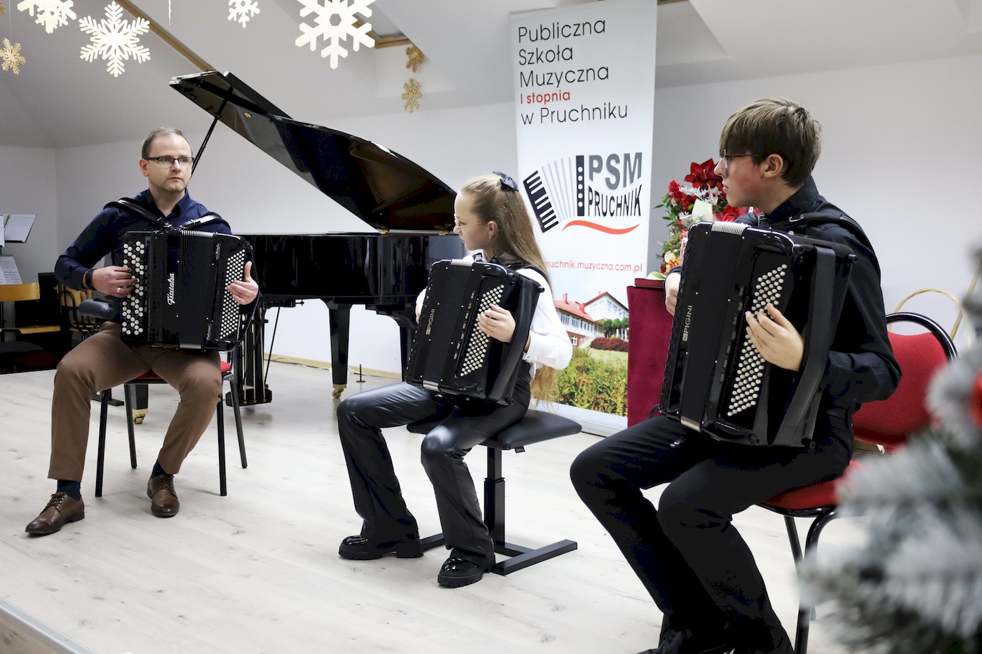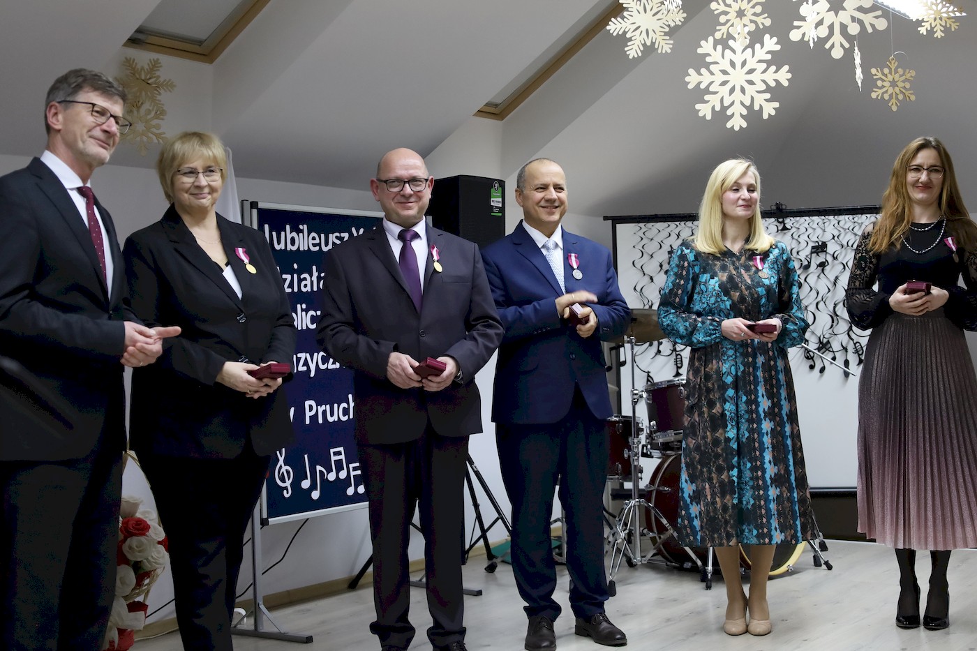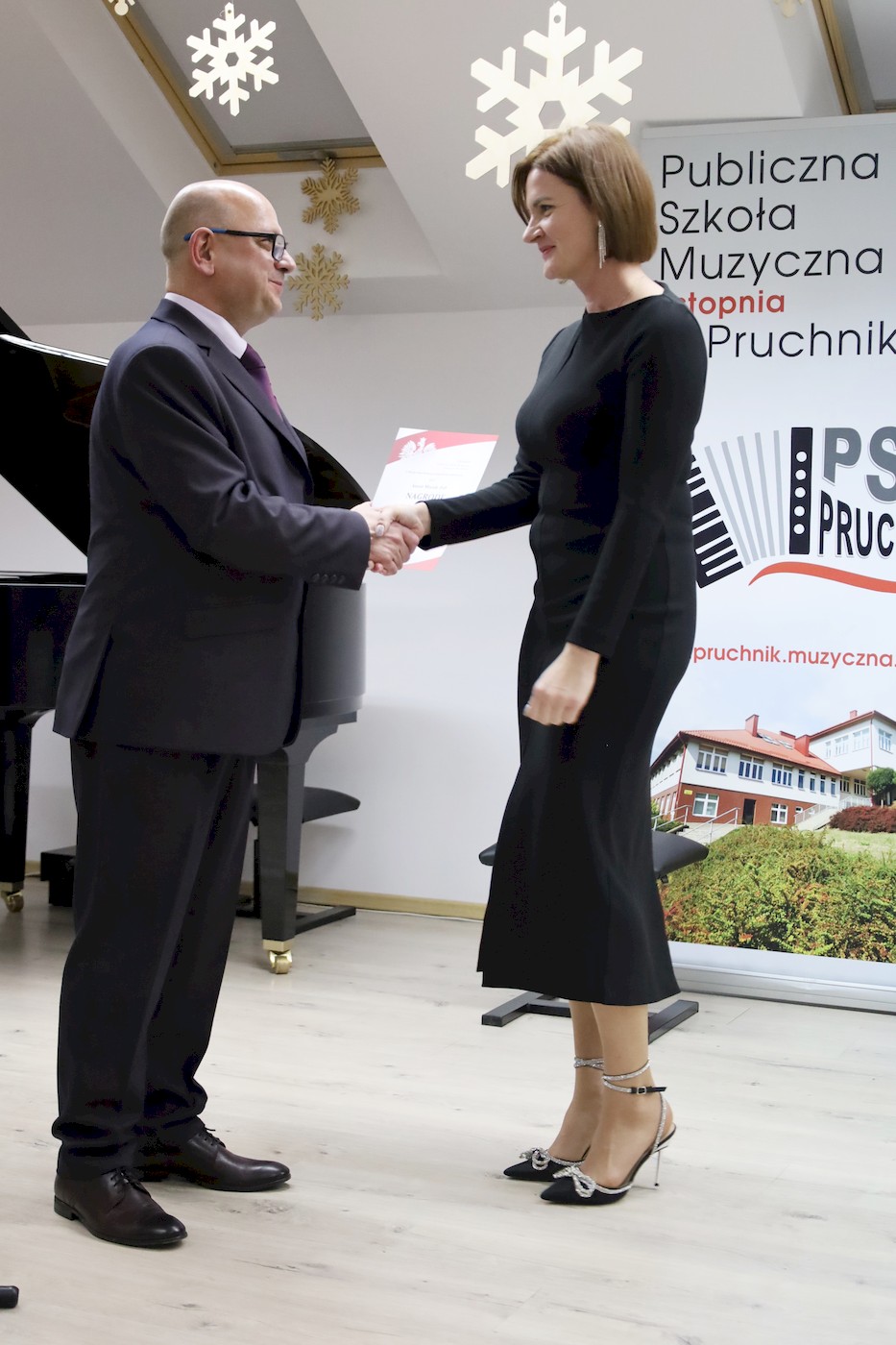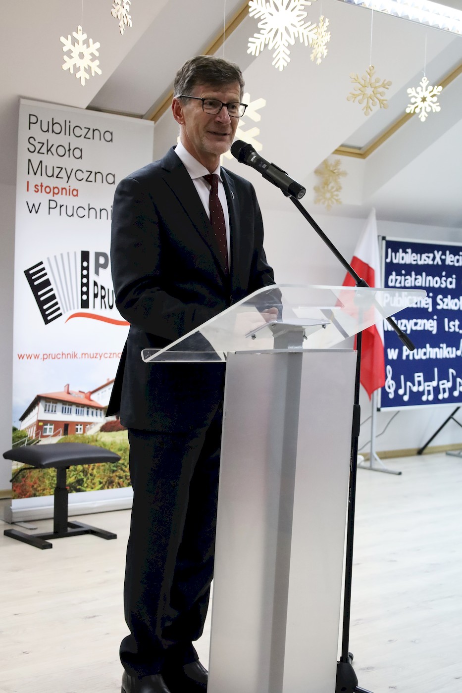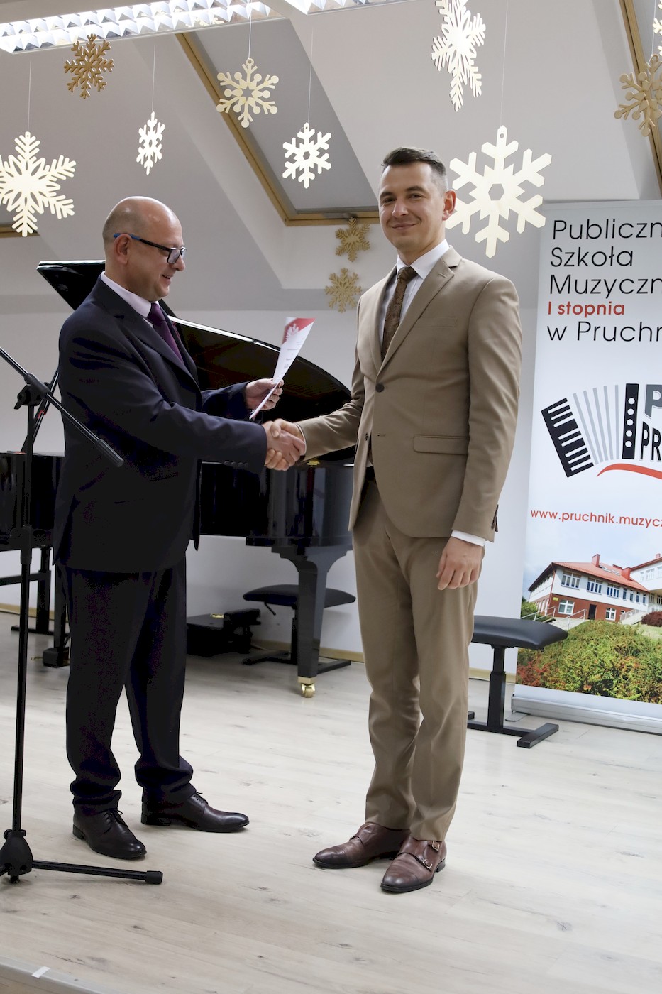 W sobotnie popołudnie 13 grudnia 2025 roku odbył się Koncert Jubileuszowy z okazji X-lecia Publicznej Szkoły Muzycznej I stopnia w Pruchniku. Uroczystość odbyła się w Sali Koncertowej szkoły. Swoją obecnością zaszczycili nas między innymi: prof. Dariusz Dudek – Doradca Prezydenta Rzeczypospolitej Polskiej, Marek Rząsa – poseł na Sejm RP, Zenobiusz Kajda – Przedstawiciel Ministra Kultury i Dziedzictwa Narodowego – Główny Wizytator Centrum Edukacji Artystycznej, Stanisław Kłopot – Burmistrz Pruchnika, Wacław Szkoła – Radny Powiatu Jarosławskiego, poprzedni Burmistrz Pruchnika, inicjator utworzenia naszej szkoły i Ryszard Bugiel – Wójt Gminy Kamień, zaprzyjaźniony z naszą Gminą, który dzielił się swoimi doświadczeniami jak uruchomić szkołę publiczną na przykładzie Gminy Kamień. W uroczystości uczestniczyli także przedstawiciele władz samorządowych, radni, dyrektorzy zaprzyjaźnionych szkół muzycznych Województwa Podkarpackiego, dyrektorzy szkół i instytucji działających na terenie Pruchnika, przedstawiciele Rady Rodziców, uczniowie, rodzice i sympatycy naszej szkoły. Program koncertu obejmował prezentację historii szkoły, wręczenie odznaczeń i nagród, wystąpienia zaproszonych gości, prezentacje artystyczne uczniów, absolwentów i zaproszonych artystów.