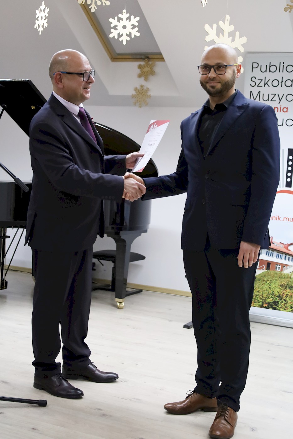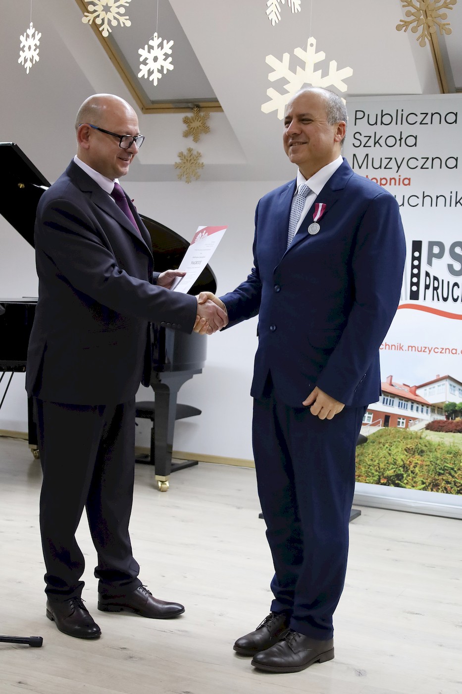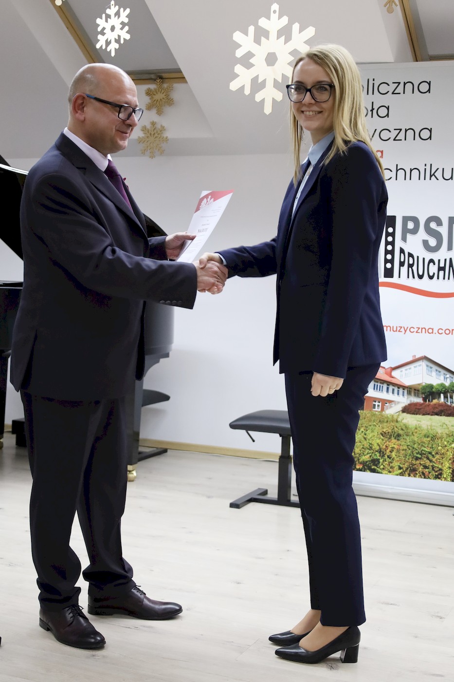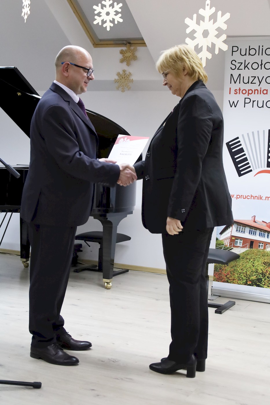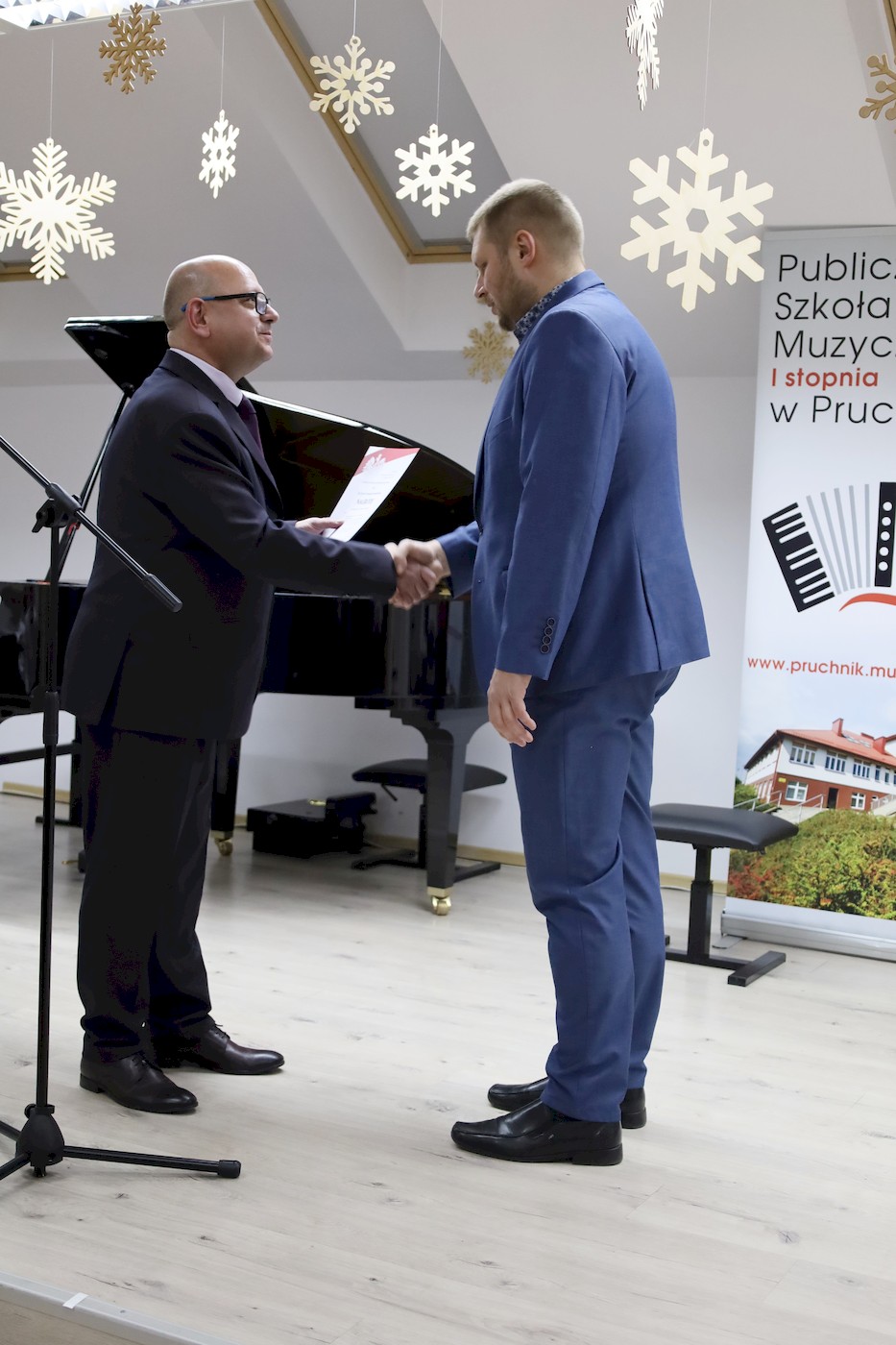 W sobotnie popołudnie 13 grudnia 2025 roku odbył się Koncert Jubileuszowy z okazji X-lecia Publicznej Szkoły Muzycznej I stopnia w Pruchniku. Uroczystość odbyła się w Sali Koncertowej szkoły. Swoją obecnością zaszczycili nas między innymi: prof. Dariusz Dudek – Doradca Prezydenta Rzeczypospolitej Polskiej, Marek Rząsa – poseł na Sejm RP, Zenobiusz Kajda – Przedstawiciel Ministra Kultury i Dziedzictwa Narodowego – Główny Wizytator Centrum Edukacji Artystycznej, Stanisław Kłopot – Burmistrz Pruchnika, Wacław Szkoła – Radny Powiatu Jarosławskiego, poprzedni Burmistrz Pruchnika, inicjator utworzenia naszej szkoły i Ryszard Bugiel – Wójt Gminy Kamień, zaprzyjaźniony z naszą Gminą, który dzielił się swoimi doświadczeniami jak uruchomić szkołę publiczną na przykładzie Gminy Kamień. W uroczystości uczestniczyli także przedstawiciele władz samorządowych, radni, dyrektorzy zaprzyjaźnionych szkół muzycznych Województwa Podkarpackiego, dyrektorzy szkół i instytucji działających na terenie Pruchnika, przedstawiciele Rady Rodziców, uczniowie, rodzice i sympatycy naszej szkoły. Program koncertu obejmował prezentację historii szkoły, wręczenie odznaczeń i nagród, wystąpienia zaproszonych gości, prezentacje artystyczne uczniów, absolwentów i zaproszonych artystów.