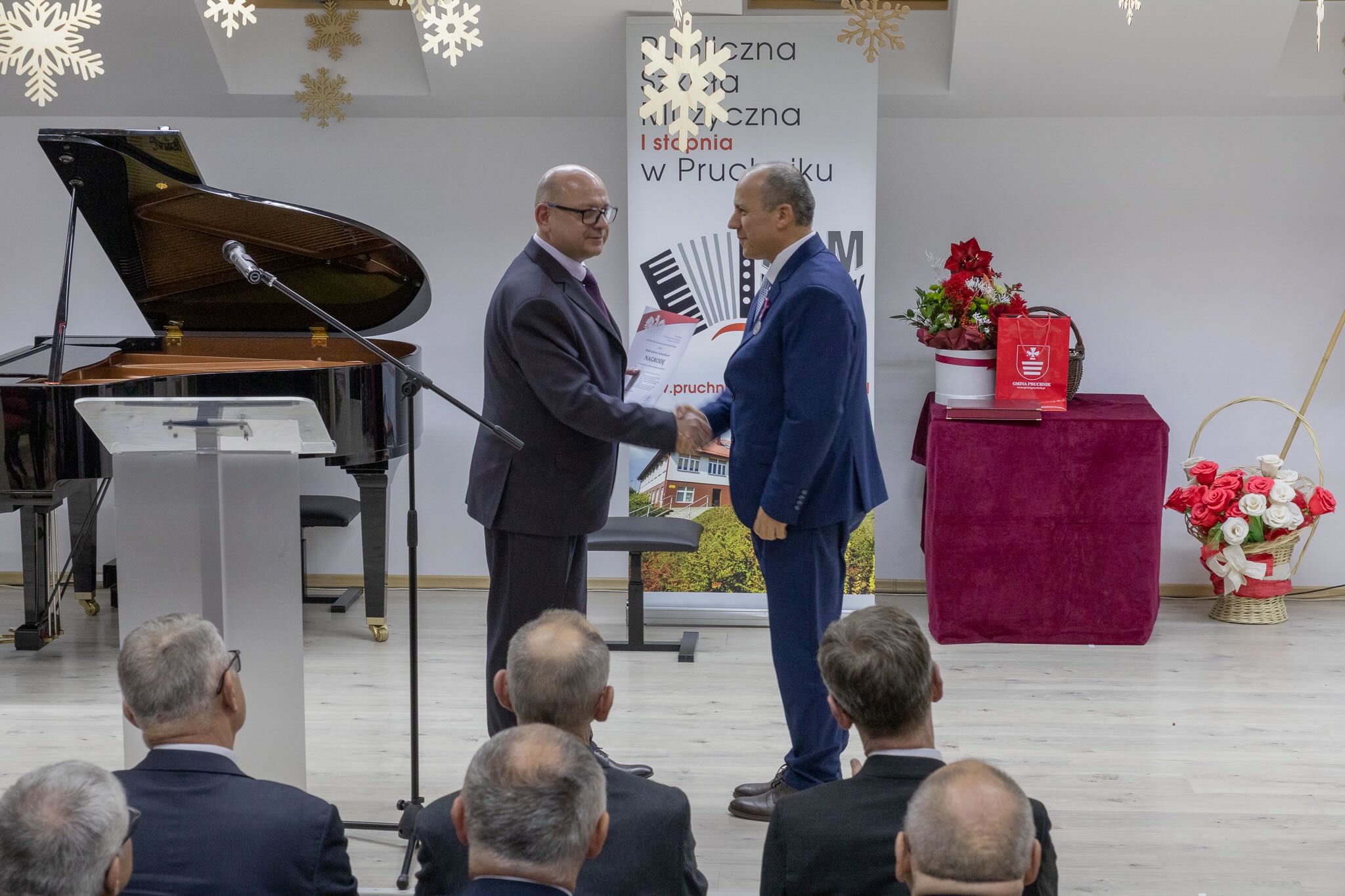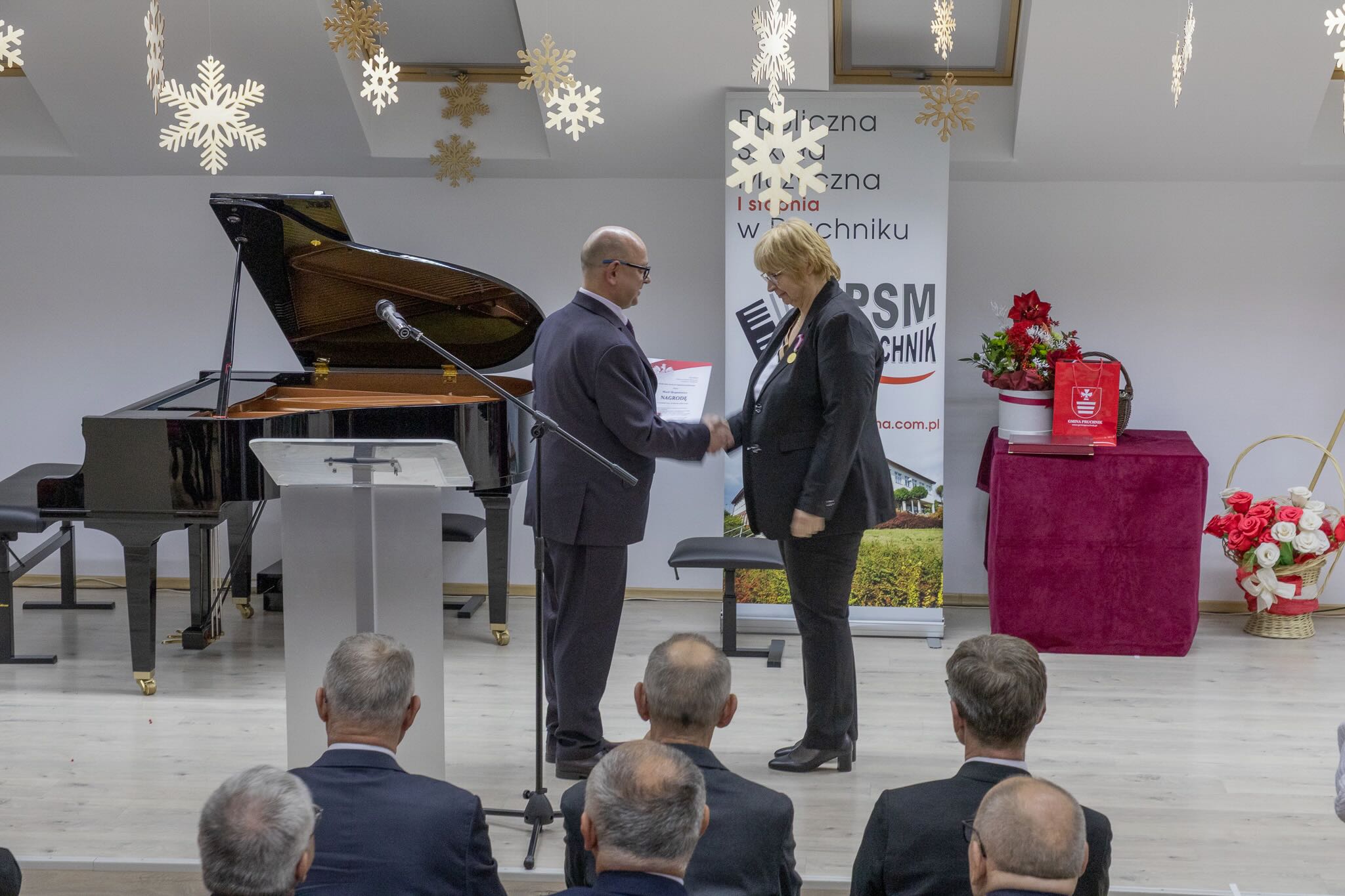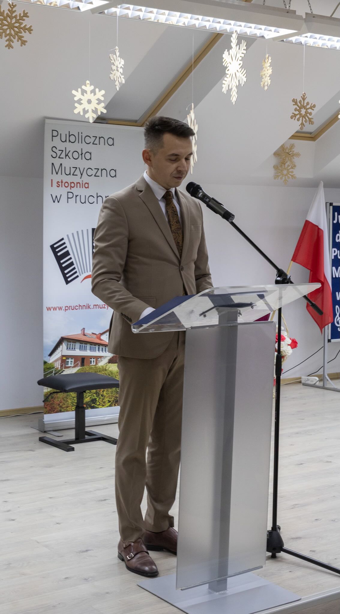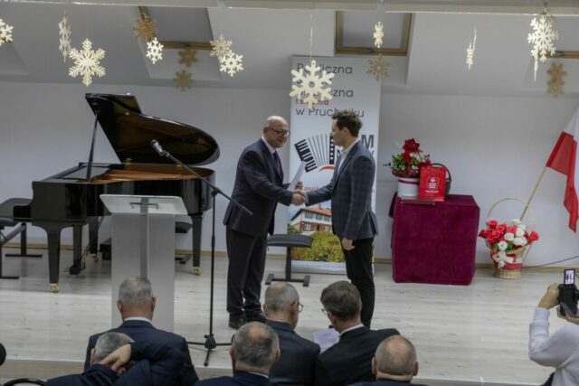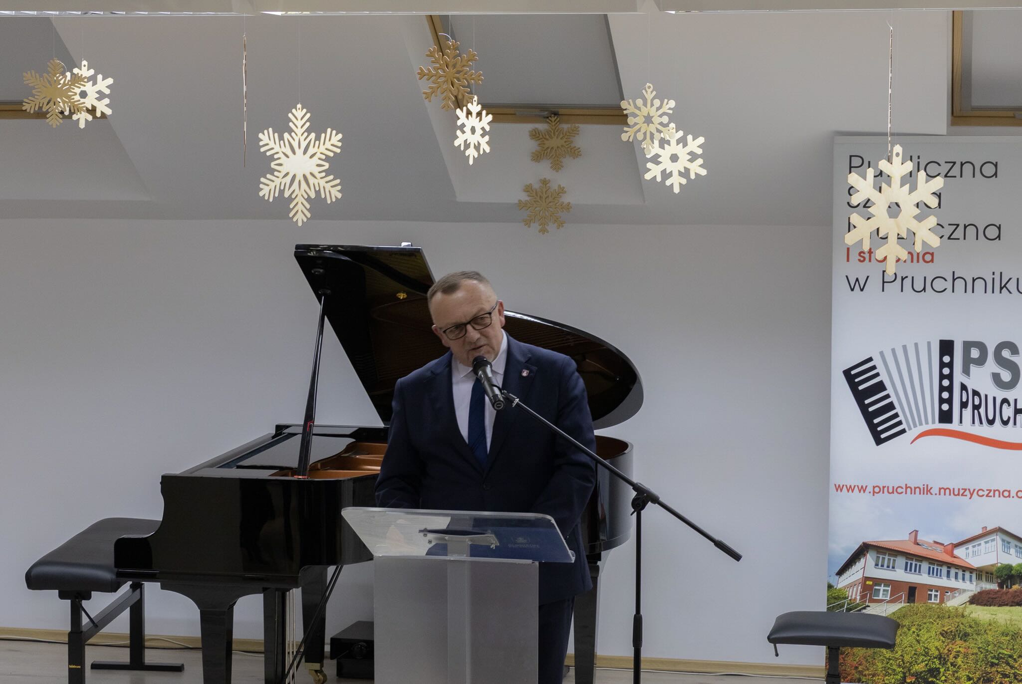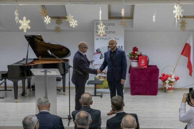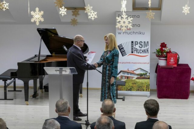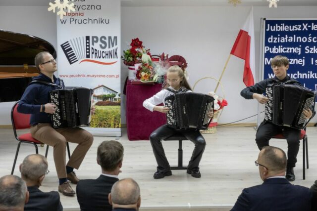 W sobotnie popołudnie 13 grudnia 2025 roku odbyły się uroczystości z okazji X-lecia Publicznej Szkoły Muzycznej I stopnia w Pruchniku. Rozpoczęły się od Mszy Świętej w Kościele Parafialnym pw. św. Mikołaja w Pruchniku a następnie w Sali Koncertowej szkoły nastąpiła część oficjalna połączona z koncertem. Swoją obecnością zaszczycili nas między innymi: prof. Dariusz Dudek – Doradca Prezydenta Rzeczypospolitej Polskiej, Marek Rząsa – poseł na Sejm RP, Zenobiusz Kajda – Przedstawiciel Ministra Kultury i Dziedzictwa Narodowego – Główny Wizytator Centrum Edukacji Artystycznej, Stanisław Kłopot – Burmistrz Pruchnika, Wacław Szkoła – Radny Powiatu Jarosławskiego, poprzedni Burmistrz Pruchnika, inicjator utworzenia naszej szkoły i Ryszard Bugiel – Wójt Gminy Kamień, zaprzyjaźniony z naszą Gminą, który dzielił się swoimi doświadczeniami jak uruchomić szkołę publiczną na przykładzie Gminy Kamień.