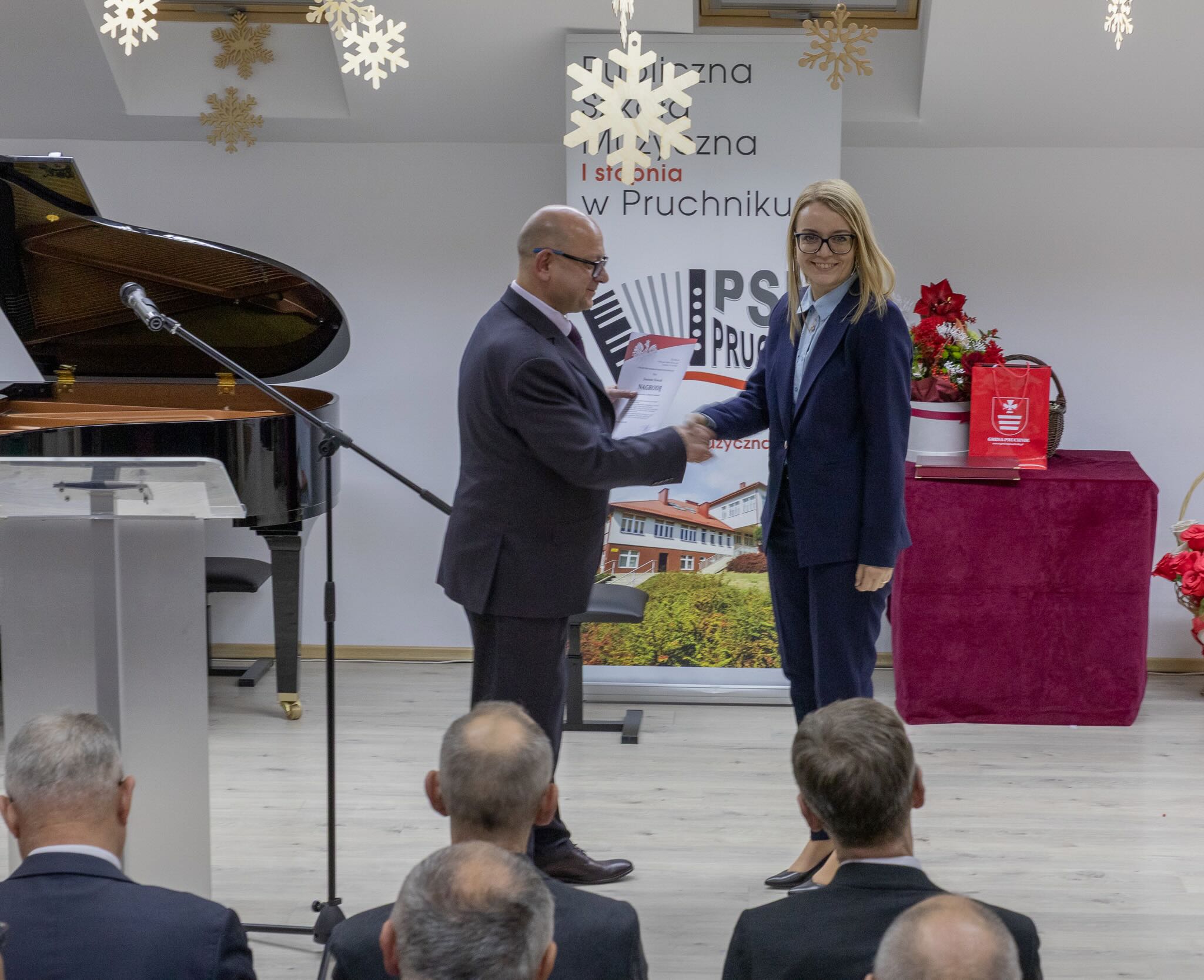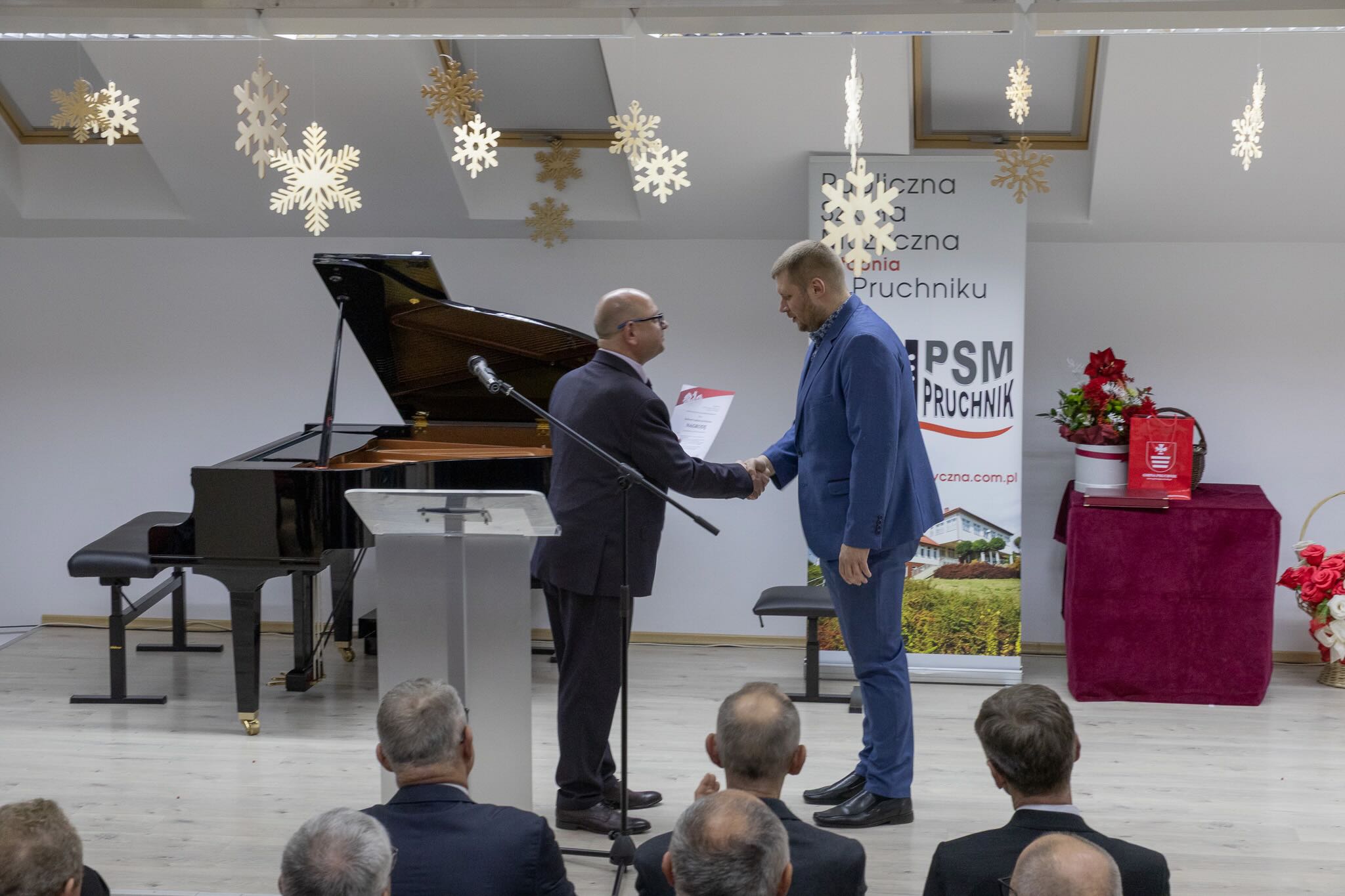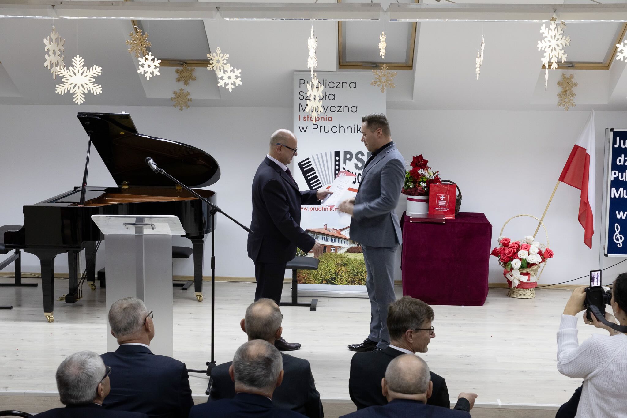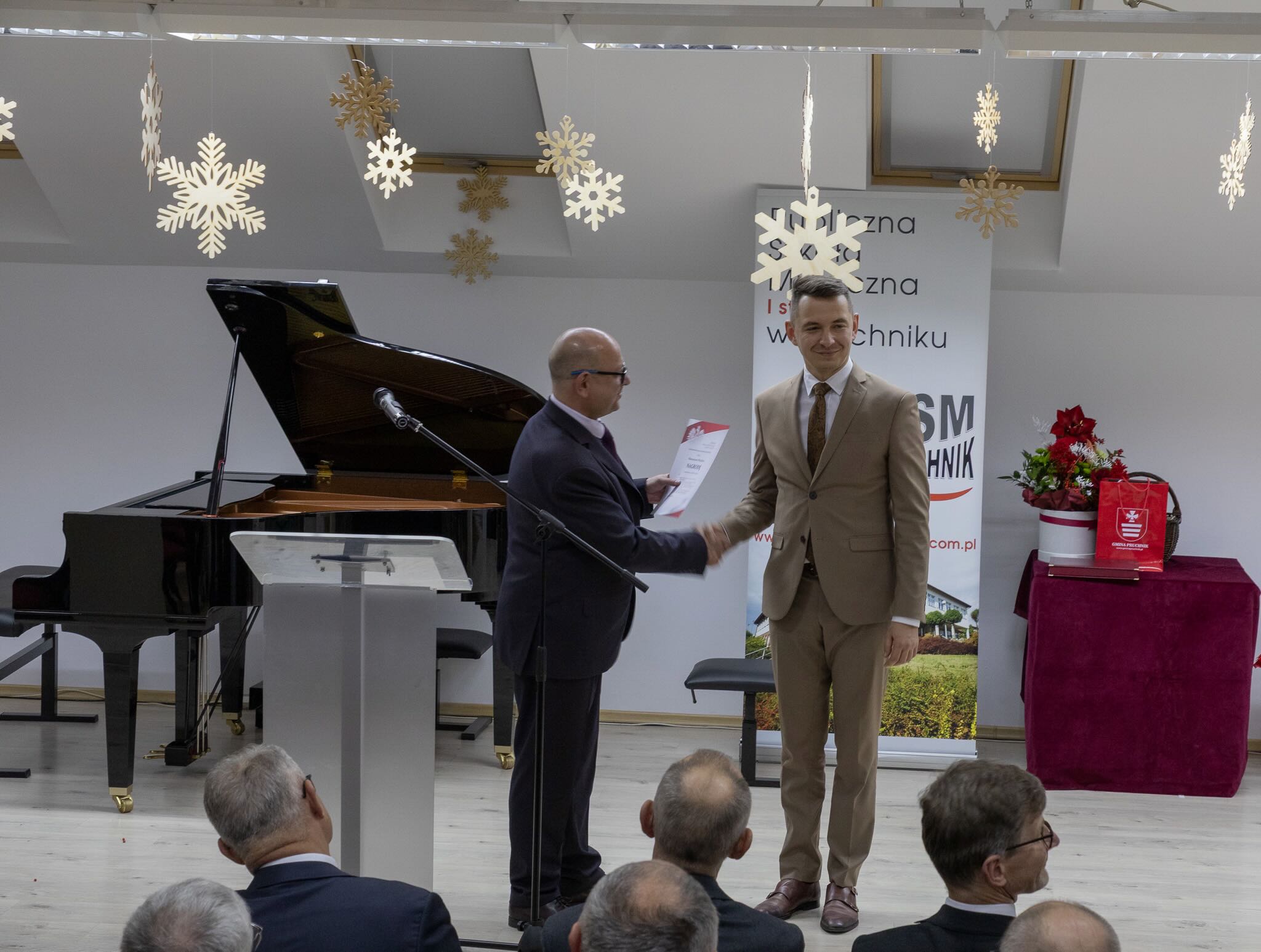 W sobotnie popołudnie 13 grudnia 2025 roku odbyły się uroczystości z okazji X-lecia Publicznej Szkoły Muzycznej I stopnia w Pruchniku. Rozpoczęły się od Mszy Świętej w Kościele Parafialnym pw. św. Mikołaja w Pruchniku a następnie w Sali Koncertowej szkoły nastąpiła część oficjalna połączona z koncertem. Swoją obecnością zaszczycili nas między innymi: prof. Dariusz Dudek – Doradca Prezydenta Rzeczypospolitej Polskiej, Marek Rząsa – poseł na Sejm RP, Zenobiusz Kajda – Przedstawiciel Ministra Kultury i Dziedzictwa Narodowego – Główny Wizytator Centrum Edukacji Artystycznej, Stanisław Kłopot – Burmistrz Pruchnika, Wacław Szkoła – Radny Powiatu Jarosławskiego, poprzedni Burmistrz Pruchnika, inicjator utworzenia naszej szkoły i Ryszard Bugiel – Wójt Gminy Kamień, zaprzyjaźniony z naszą Gminą, który dzielił się swoimi doświadczeniami jak uruchomić szkołę publiczną na przykładzie Gminy Kamień.