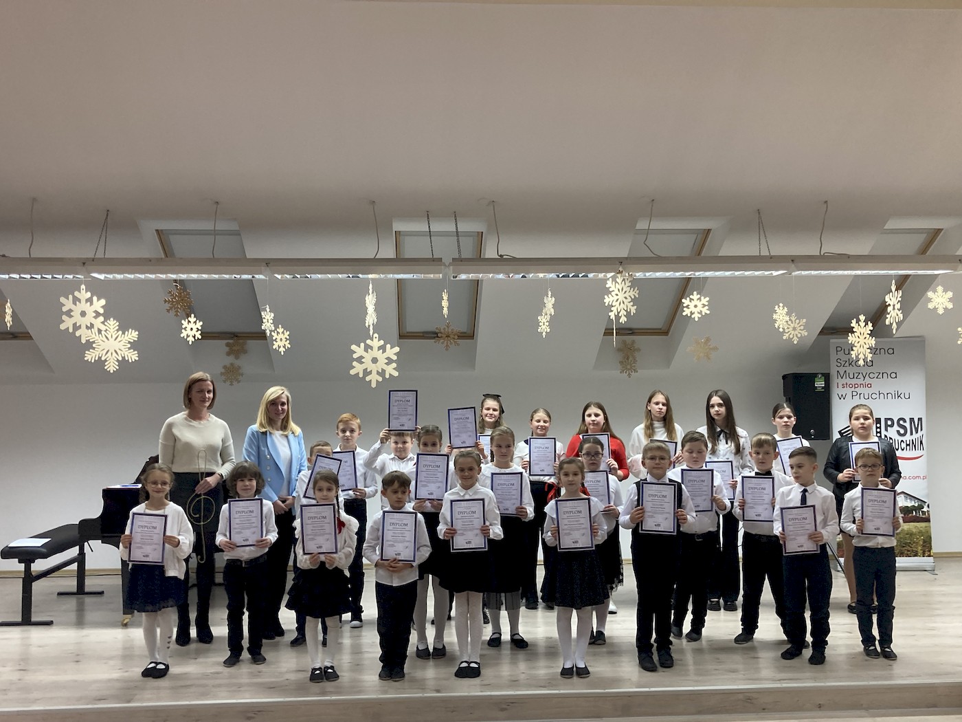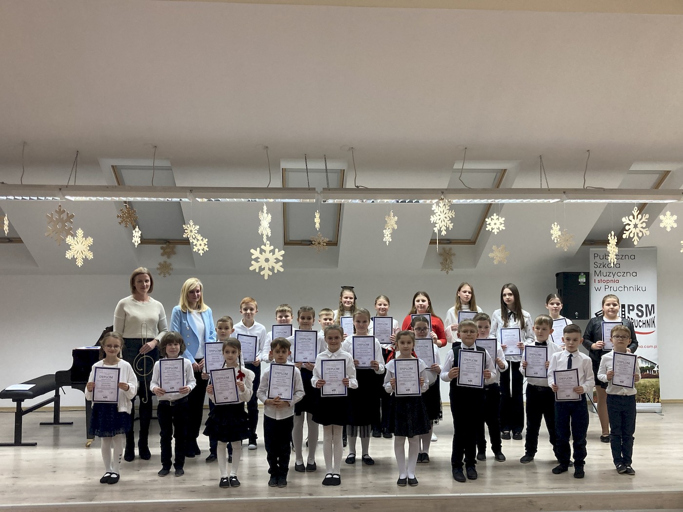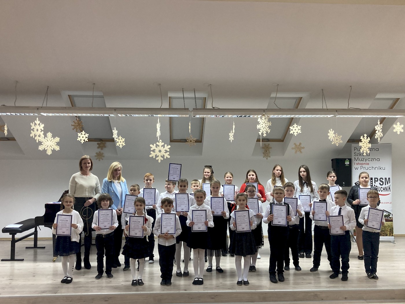 Zapraszamy do obejrzenia zdjęć z koncertu i ceremonii pasowaniem na ucznia PSM I st. w Pruchniku. W ramach uroczystości miało niejsce pasowanie i ślubowanie uczniów klas pierwszych a także popisy w wykonaniu uczniów szkoły. Wydarzenie odbyło się po południu we wtorek 9 grudnia 2025 roku. W imieniu dyrektora szkoły ceremonię pasowania poprowadziła p. Anna Misiak-Zub.