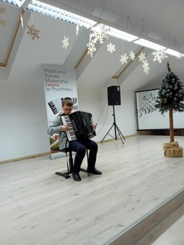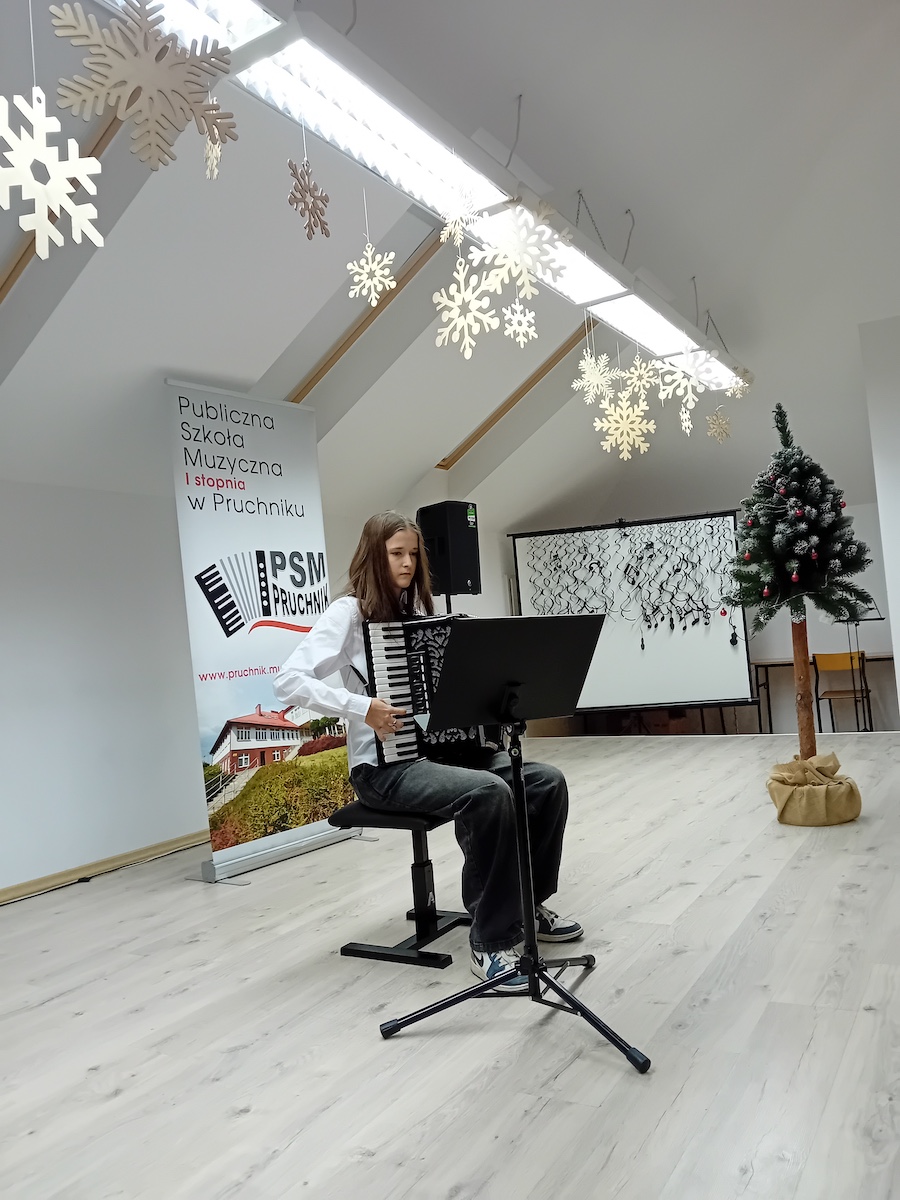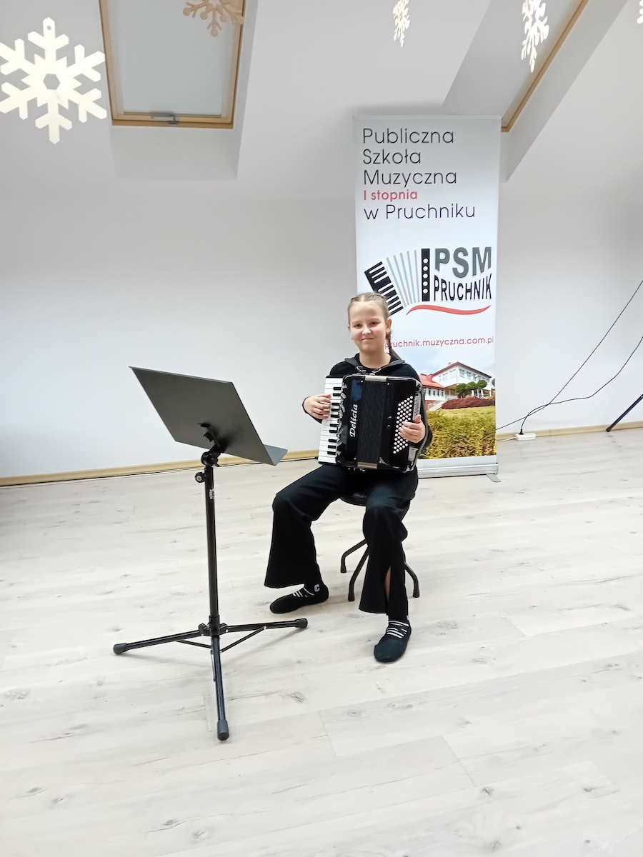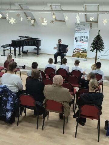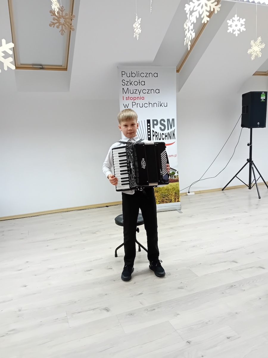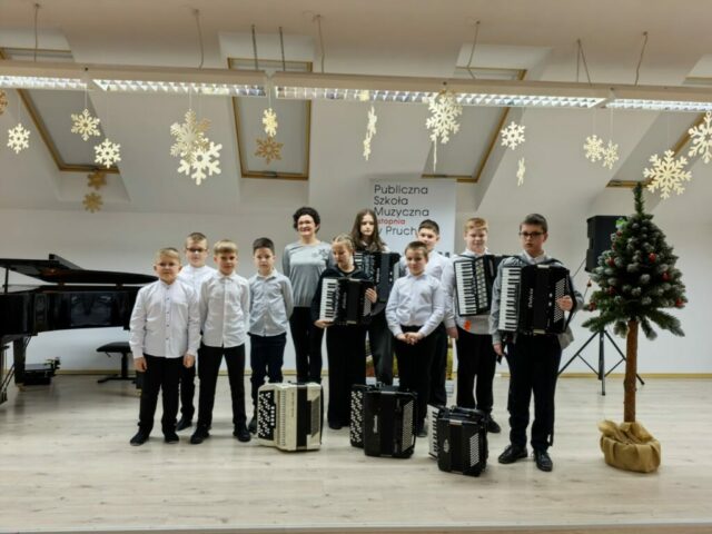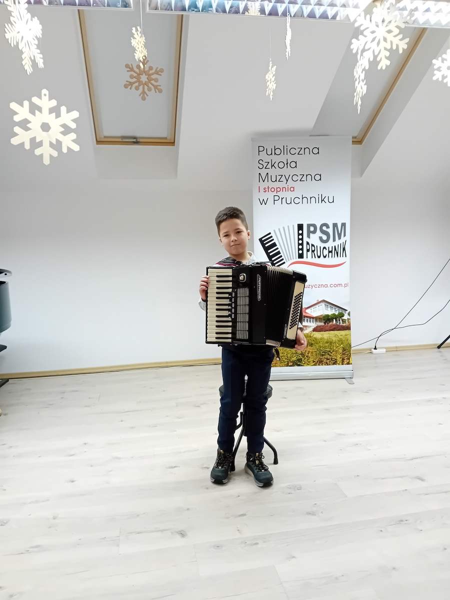 W dniu 21.01.2026 roku o godz. 16.00 w Sali Koncertowej Publicznej Szkoły Muzycznej I stopnia w Pruchniku odbył się Popis Klasy Akordeonu pani Justyny Pasternak. W koncercie wzięli udział wszyscy uczniowie z klasy. W programie koncertu można było usłyszeć kolędy jak i utwory, które uczniowie grają na codzień. Popis był szczególny dla uczniów ponieważ z okazji dnia Babci i Dziadka zaprosili swoich dziadków, którzy mogli zobaczyć i usłyszeć jak ich wnuczęta pięknie rozwijają swoje talenty w naszej szkole. Bardzo dziękujemy za państwa obecność i wsparcie swoich wnucząt na scenie.